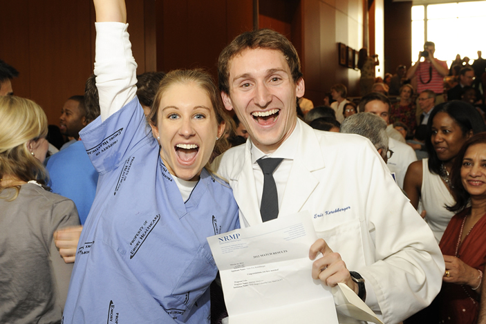 کامپیوتر National Resident Matching Program لیست های دو طرف ( متقاضیان و برنامه ها) ترکیب می شوند و براساس یک الگوریتم، جفت متقاضیان و برنامه ها مشخص می شود. نتایج این جفت کردن در سومین جمعه ماه مارس هر سال “match day” در ۱۵۵ دانشکده پزشکی ایالات متحده در طی مراسم هایی اعلام می شود. زمانی که متقاضیان وارد سیستم مچ می شوند باید برای رزیدنتی به برنامه ای که در آن مچ شده اند مراجعه کنند. همین قانون برای برنامه ها هم وجود دارد، آنها باید کسانی را که به آنها معرفی شده است بپذیرند.روز دوشنبه پیش از اعلام نتایج به افراد اطلاع داده می شود که قبول شده اند یا خیر ( اما محل قبولی اعلام نمی شود) در صورت عدم قبولی فرد پوزیشن های خالی مانده اعلام می شود و افراد می توانند با آن برنامه ها تماس بگیرند. به این فرایند اقدام برای پوزیشن های خالی “scramble” گفته می شود.